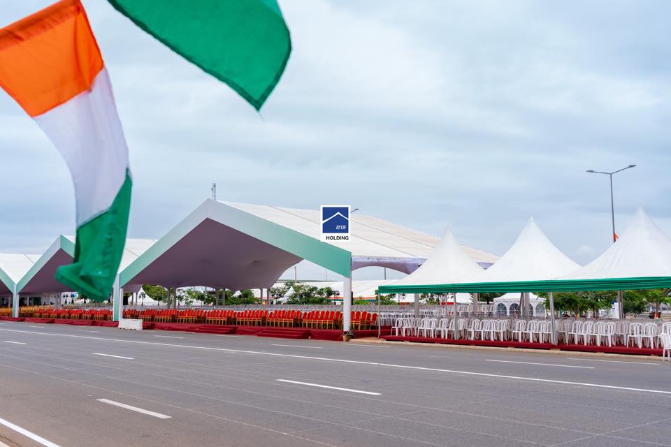 En ce jour mémorable marquant les 65 années d’indépendance de notre belle Côte d’Ivoire, AYUF HOLDING est fière d’avoir contribué aux installations qui célèbrent cette étape historique majeure.